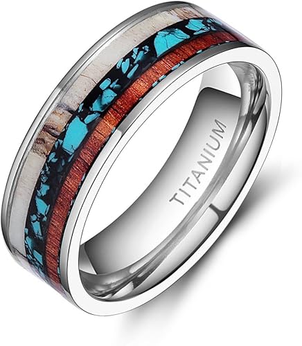 8mm Herren Damen Titan Ringehirsch Geweih Ring Aus Titan Holz Turkis Amazon De Schmuck