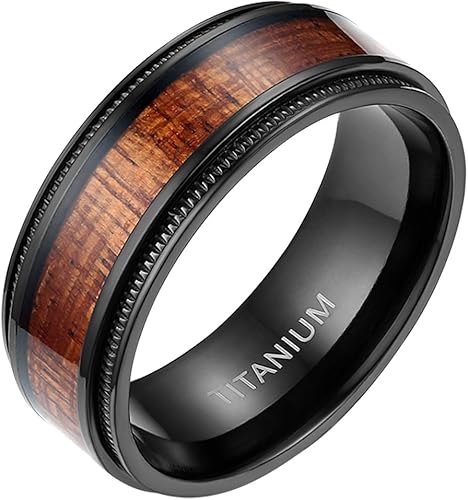 Mabohity Ring Herren Titan Ring Titanium 8mm Holz Echtholz Intarsie Milgrain Rand Ehering Verlobungsring Freundschaftsring Hochzeit Band Schwarz Grosse 52 Bis 72 Amazon De Schmuck