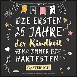 Die Ersten 25 Jahre Der Kindheit Sind Immer Die Hartesten Gastebuch Zum 25 Geburtstag Fur Mann Oder Frau 25 Jahre Deko Geschenk Buch Zum Eintragen Fur Wunsche Und Fotos Der