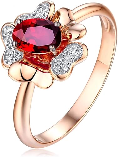 Daesar 18 Karat Rotgold Ring Damen Blume Mit Rubin 0 6ct Hochzeit Ring Rosegold Mit Diamant Amazon De Schmuck