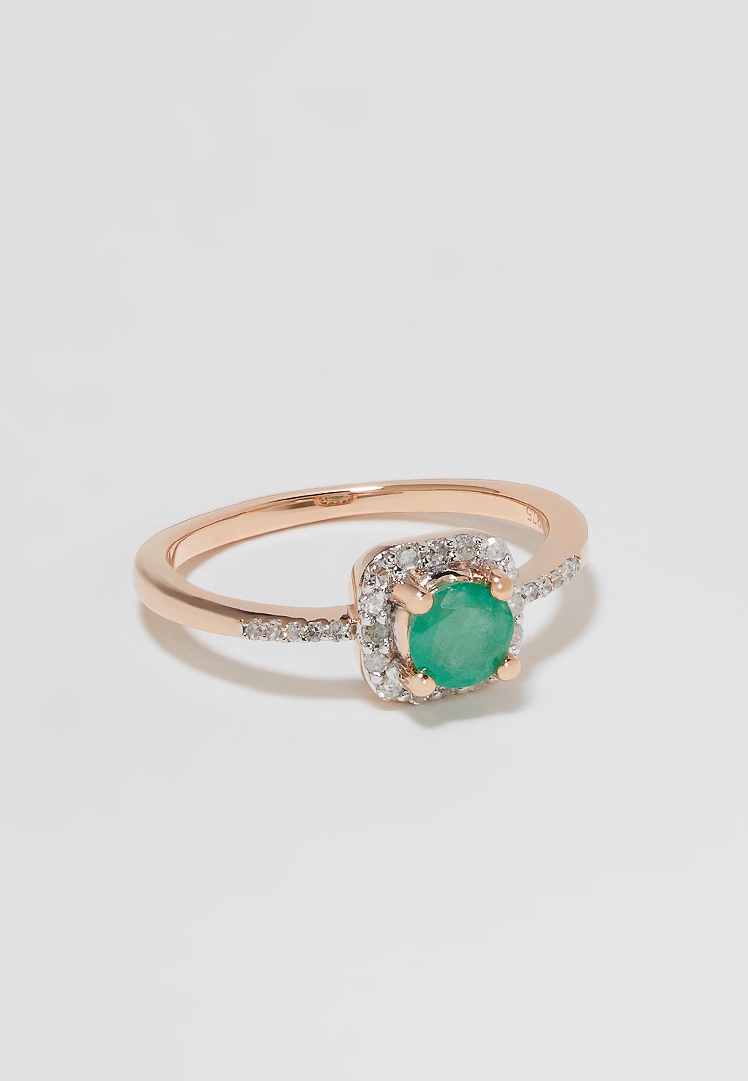 Diamant L Eternel 9kt Rose Gold 0 12ct Certified Diamond 0 45ct Emerald Halo Ring Ring Rosegold Coloured Rosegoldfarben Zalando De