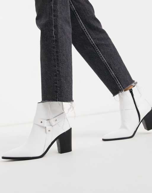 Depp Western Stiefeletten Mit Spitzer Zehenpartie Und Breiter Passform Aus Weissem Leder Evesham Nj