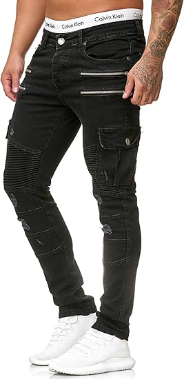 Oneredox Herren Jeans Denim Slim Fit Used Design Modell 5161 Schwarz Amazon De Bekleidung