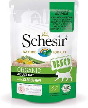 Schesir Cat Bio Adult Huhn Und Schwein Mit Zucchini Katzenfutter Nass 16 Beutel X 85 G Amazon De Haustier