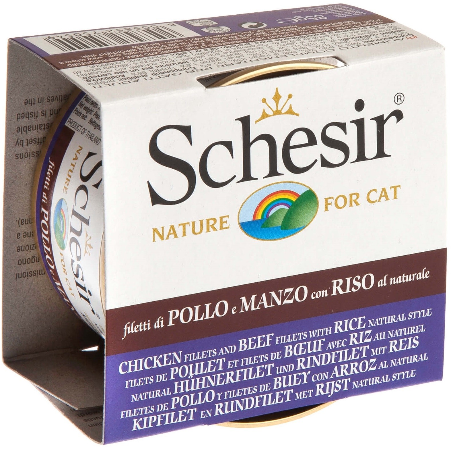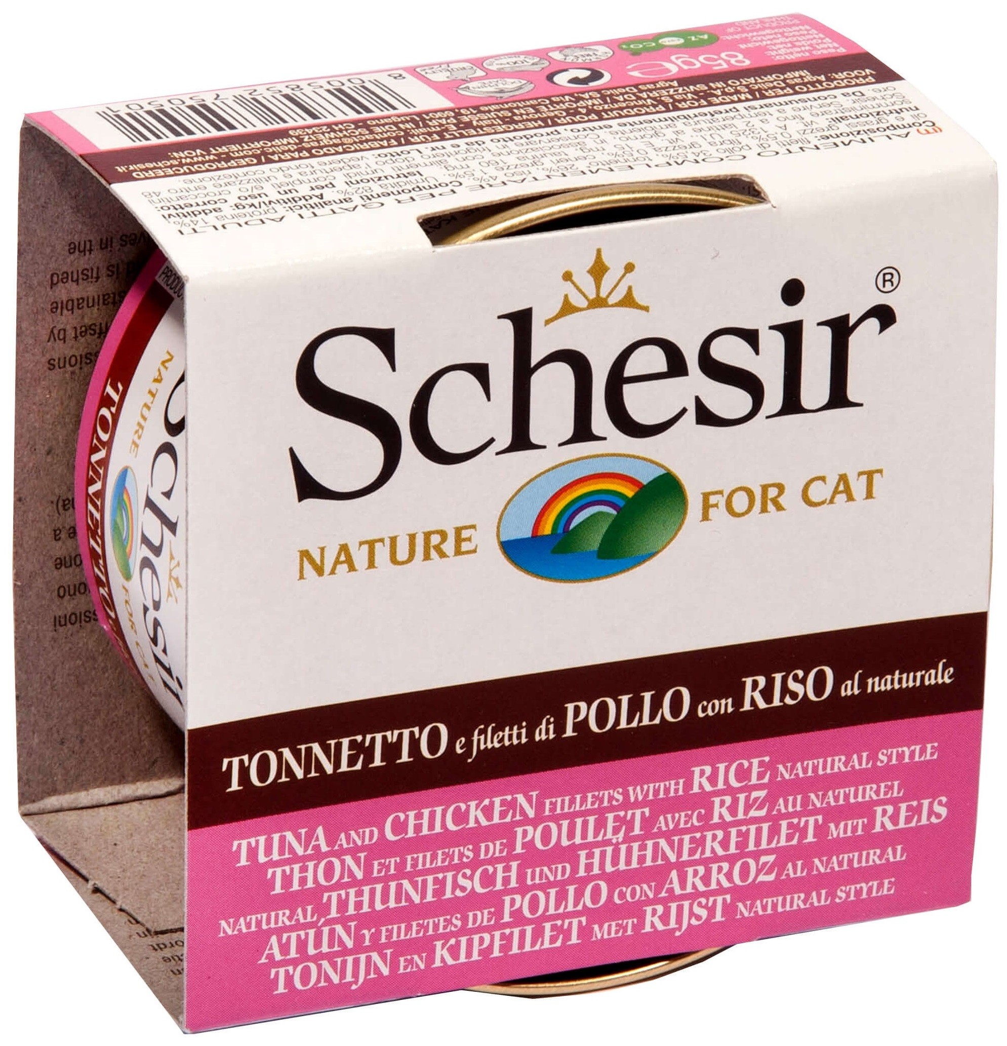 Schesir Adullt Huhn ist anscheinend ein sehr fein Schmeckendes Katzenfutter Meine Katze macht sich über dieses Futter so her, das man denkt sie hätte schon 3 Wochen nichts mehr zu fressen bekommen. Schesir Katzenfutter in Dosen mit Huhn, Rind mit Reis 85 g (Geschmack Rindfleisch & Huhn & Reis ArtNr ) günstig online bestellen Lieferung bis zur Haustür Beste Qualität. Schesir Huhn und Rind mit Reis Natural Style für Katzen ist ein sehr leckeres, ausgewogenes Nassfutter für Katzen aller Rassen Dieses Futter unterscheidet sich von anderen durch seinen herrlichen Geschmack, natürliche Zutaten und einen ausgewogenen Charakter.
