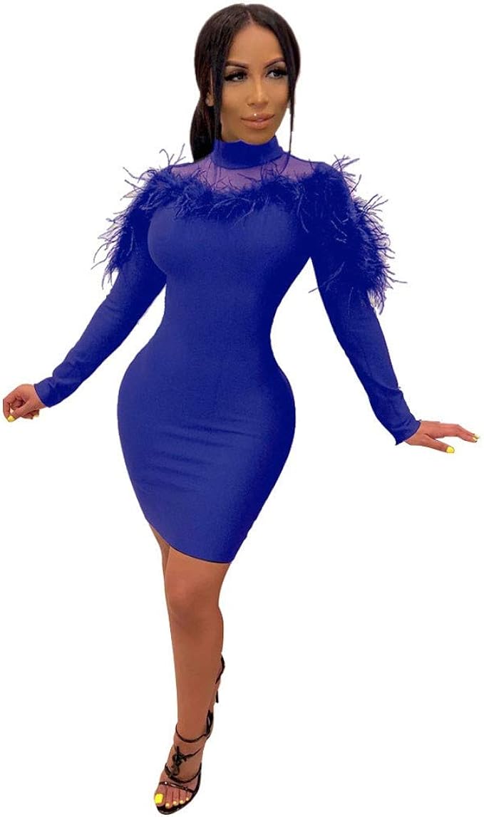 Briskorry Abendkleider Ballkleid Festliche Kleider Fur Damen Cocktailkleid Langarm Brautkleider Sexy Lange Armel V Ausschnitt Gittergewebe Feder Slim Fit Pullover Paket Hip Kleid Amazon De Bekleidung