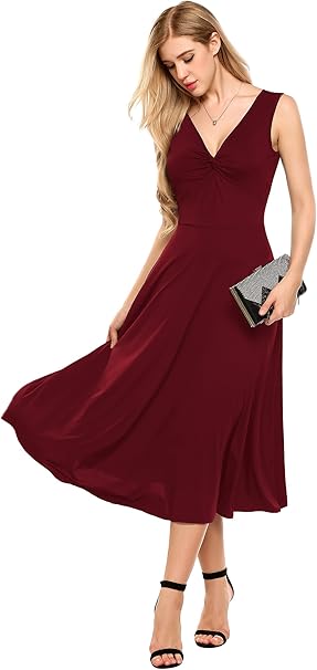 Meaneor Damen Elegant Shirtkleid Ohne Armel V Ausschnitt Sommerkleid Abendkleid Festlich Swing Wickelkleid Wadenlang Weinrot Eu40 L Amazon De Bekleidung