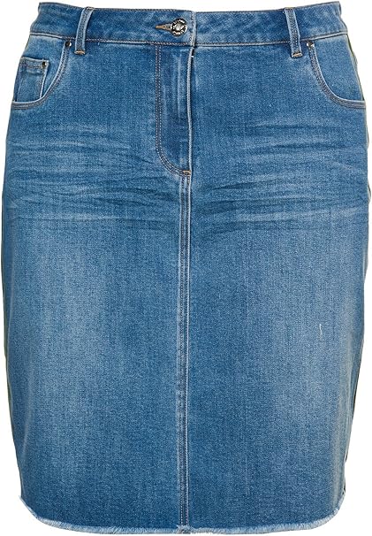 Studio Untold Damen Grosse Grossen Bis 54 Jeansrock Denim Rock Mit Fransensaum Seitenpaspeln Geradem Schnitt Light Blue 54 92 54 Studio Untold Amazon De Bekleidung