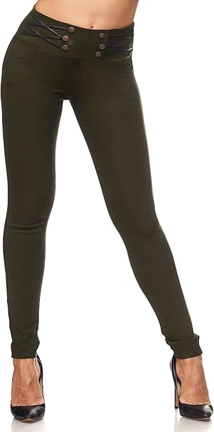 Damen Treggings Hoher Bund Stretch Hose Skinny Jeggings D2117 Khaki S M Amazon De Bekleidung