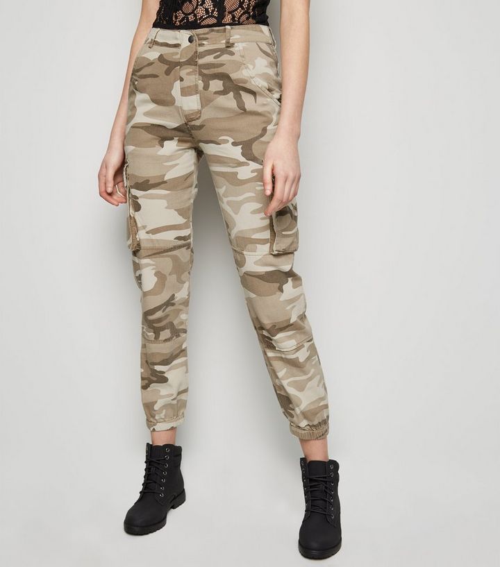 Graue Cargohose Mit Camouflage Muster New Look