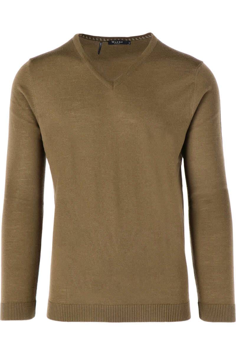 Hochwertiger Maerz Modern Fit Pullover Mit V Ausschnitt In Der Farbe Khaki Einfarbig Der Pullover Ist Aus 100 Merinowolle Und Maschinenwaschbar Businesshemden Com