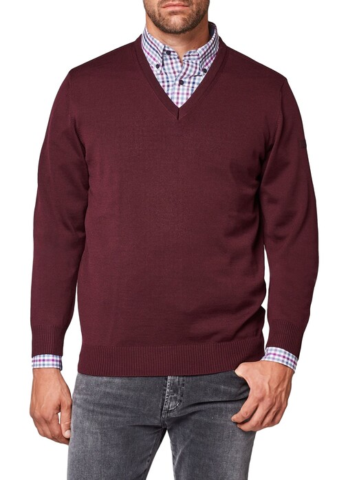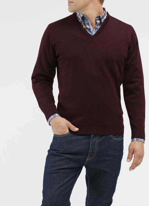 Hochwertiger Maerz Casual Classic Fit Pullover Mit V Ausschnitt In Der Farbe Himbeer Einfarbig Der Pullover Ist Aus 100 Merino Superwash Und Maschinenwaschbar Businesshemden Com