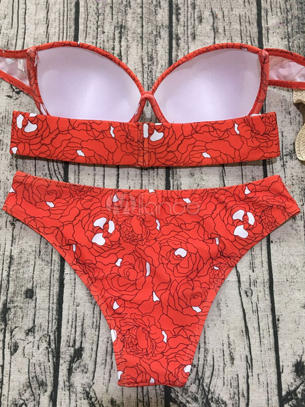 Sexy Bikini 21 Red Cut Out Printed Strapless Push Up Bikini Milanoo Com