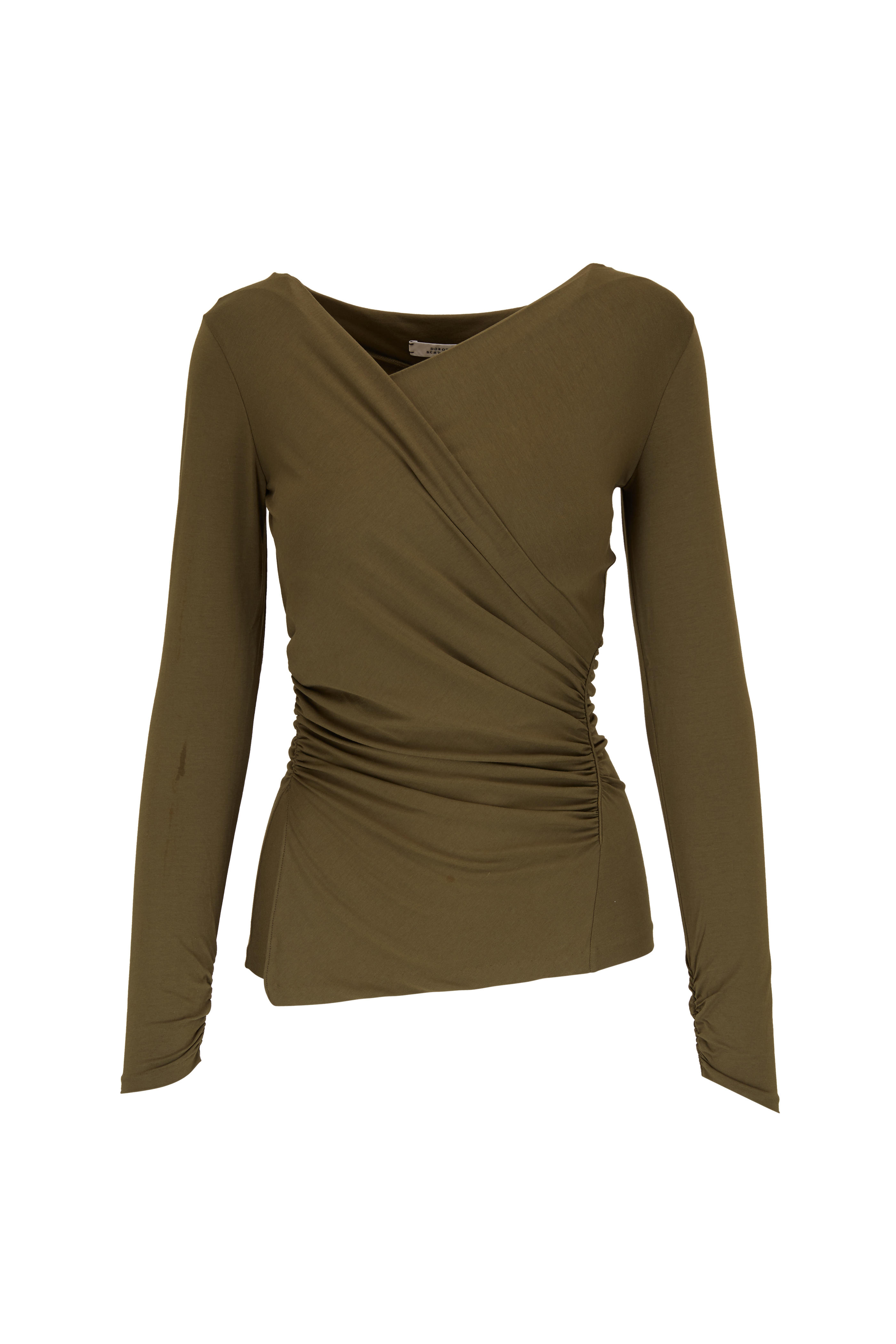 Dorothee Schumacher Olive Cotton Jersey Ruched V Neck Top Mitchell Stores