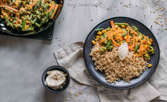 Schnelles Meal Prep 1 Cremige Gemusepfanne Mit Reis Sevencooks