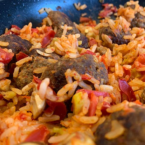 Gemusepfanne Mit Reis Und Hackballchen Pfannen Held De