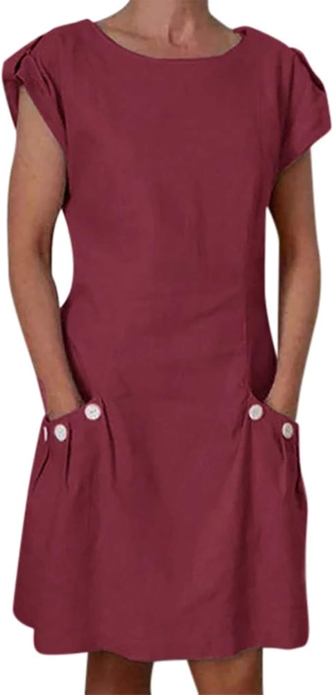 Damen Sommer Leinenkleid Grosse Grossen Damen Kleider Strand Elegant Casual A Linie Kleid Kurzarm Sommerkleider Strandkleider Lose Rundhals Einfarbig Boho Knielang Tunika Kleid Etuikleid Amazon De Bekleidung