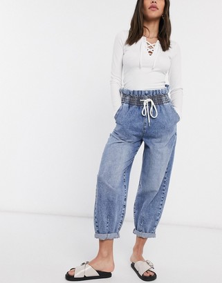 Jeansy Balloon Fit Z Paskiem Do Zawiazania Promo Do 40 Bershka Poland Jeans Fit Fit Jeans