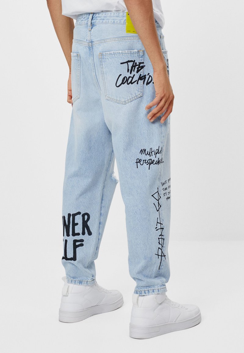 Bershka Mit Graffiti Jeans Relaxed Fit Blue Denim Hellblau Zalando At