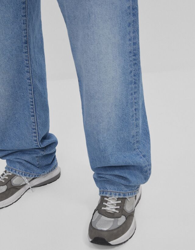 Jeans denim baggy loose fit Bershka PRECIO 3,02€ PRECIO 5,99€ Precio original 19,95€ descuento del 85 % ¡Lo sentimos!. Diese Saison setzen wir vor allem auf bequeme Styles!. Z1975 BAGGY JEANS WITH BUTTONS 3,490 ALL BAGGY PAPERBAG TROUSERS COLOURS / Dark blue, Light blue, Midblue, Grey Highwaist trousers with an elasticated waist, front pockets, back patch pockets and front zip fastening with a metal button NEW / 3 Colours BAGGY PAPERBAG TROUSERS 3,490 ALL.