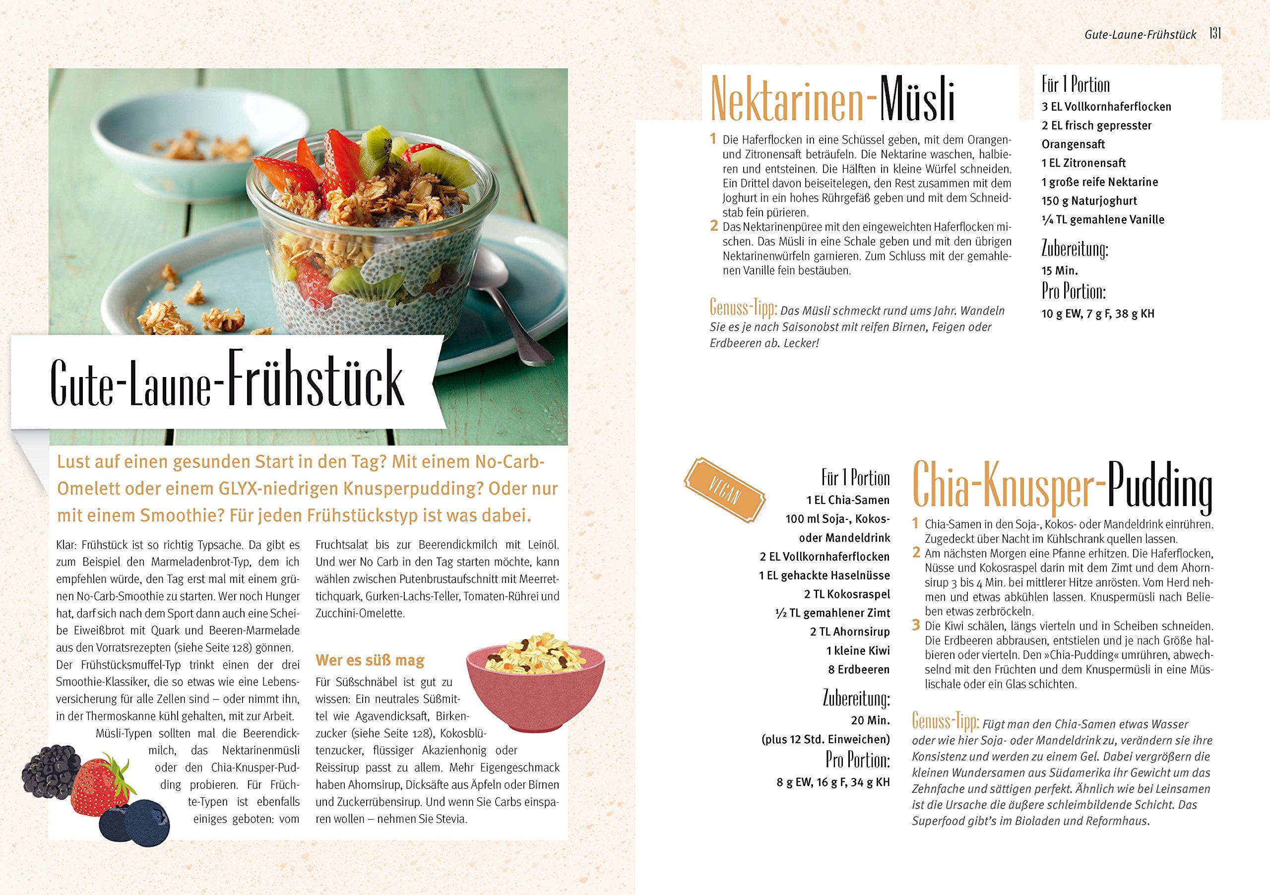 Glyx schnelle Rezepte Ebook written by Marion Grillparzer Read this book using Google Play Books app on your PC, android, iOS devices Download for offline reading, highlight, bookmark or take notes while you read Glyx schnelle Rezepte. GesundesFrühstückRezepte Energie bis zum Zmittag soll uns das Frühstück geben Wir haben Rezeptideen für ein gesundes Frühstück vom Müesli bis zum Bauernbrot oder Muffin Fein, nahrhaft und gesund sollte das perfekte Frühstück sein Isst du morgens am liebsten Brot oder Brötchen?. Doch beachte In der Regel wird in der strengen Phase der 21 e Stoffwechselkur zum Frühstück nur ein hochwertiger Eiweißshake* empfohlen Für mehr Abwechslung findest du bei uns leckere Rezepte.