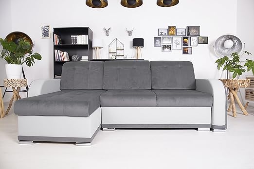 Selsey Trinity Ecksofa Couch Wohnlandschaft Polsterecke In Grau Weiss Ausziehbar Mit Schlaffunktion Inklusive Bettkasten Freistehend Schlafsofa Kunstleder 243 X 140 X 90 Cm Amazon De Kuche Haushalt
