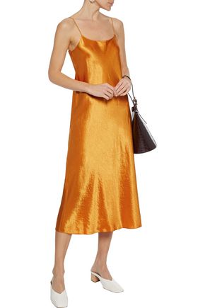 Vince Crinkled Satin Midi Slip Dress In Marigold Modesens