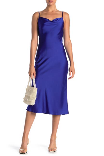 Satin Cowl Neck Midi Slip Dress Express