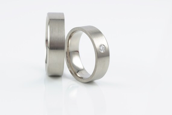 Trauringe In Weissgold Mit Brillant Eheringe Breit Kantig Etsy