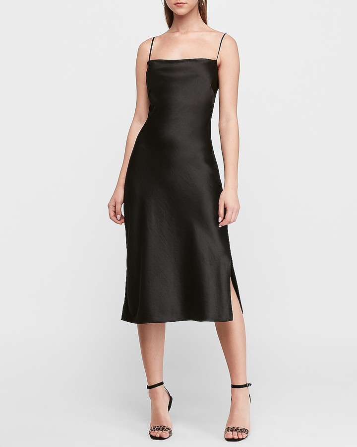 Satin Cowl Neck Midi Slip Dress Express