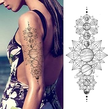 6 Stuck 19x9cm Temporar Tatowierung Schwarz Tattoo Korperkunst Extra Temporar Tatowierung Klebe Tattoo Sticker Fake Arm Tattoos Aufkleber Fur Manner Frauen Planet Flower Astronaut Whale Tattooaufkleb Amazon De Beauty