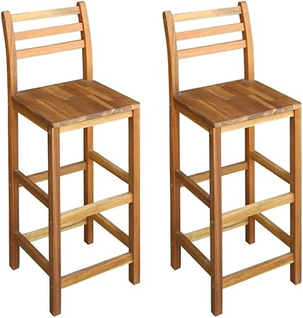 Amazon Com Tidyard 2 Pcs Bar Chairs With Backrests Footrests Indoor Outdoor Kitchen Dining Room Decor Solid Acacia Wood 16 5 X14 2 X43 3 Garden Outdoor
