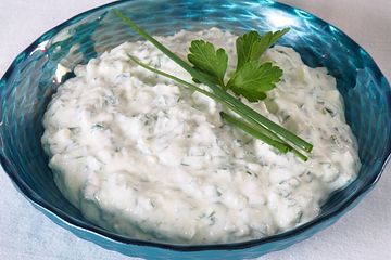 Ein fein würziger Kartoffelsalat mit Brühe und Speckwürfeln Passt gut zum Bockwürstchen, als kaltes Mittagessen, zum Schnitzel, zum Backfisch und ist mit Brühe viel kalorienärmer als mit Mayonnaise. KräuterQuarksauce Eine leichte Kräutersauce mit Magerquark und frischen Kräuter Ihrer Wahl. Kräuterquark ist perfekt zum Dippen von Brot oder zu Kartoffeln, Foto Food & Foto Experts Die Basis für selbst gemachten Kräuterquark können entweder Magerquark oder die reichhaltigeren Varianten mit bis zu 40 % Fett sein Allgemein gilt, je fettiger der Quark, desto vollmundiger, cremiger aber auch kalorienhaltiger wird der Kräuterquark.