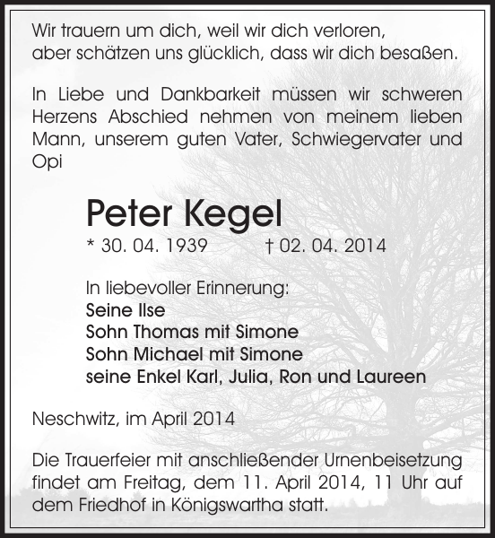 Peter Kegel Traueranzeige Sachsische Zeitung