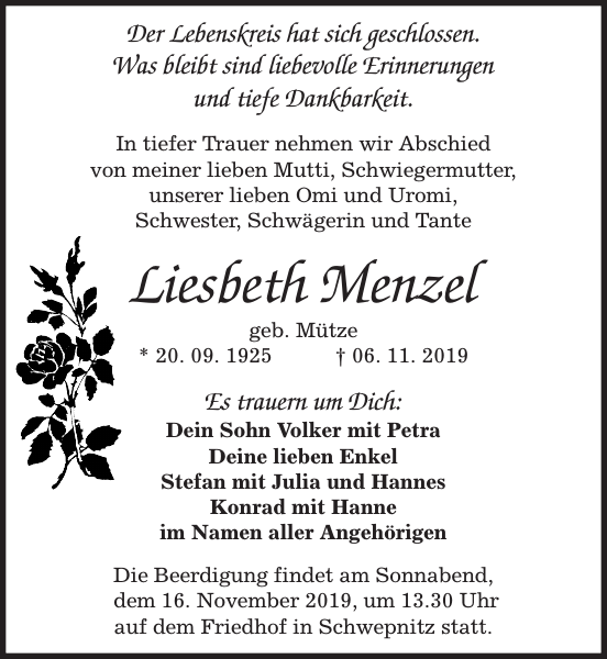 Liesbeth Menzel Traueranzeige Sachsische Zeitung