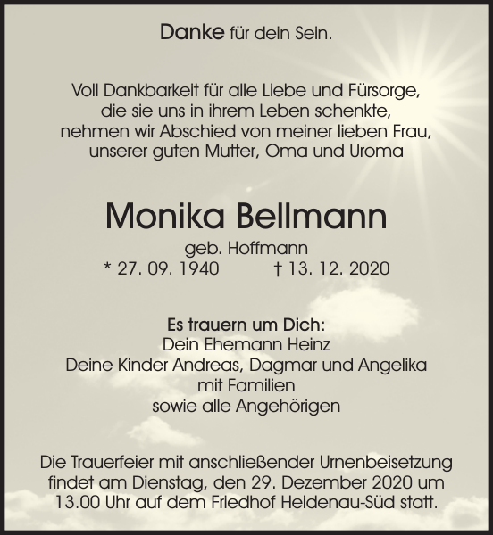 Monika Bellmann Traueranzeige Sachsische Zeitung