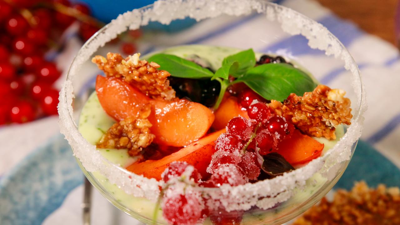 Quarkcreme Mit Obstsalat Und Pfeffernuss Croutons Brigitte De