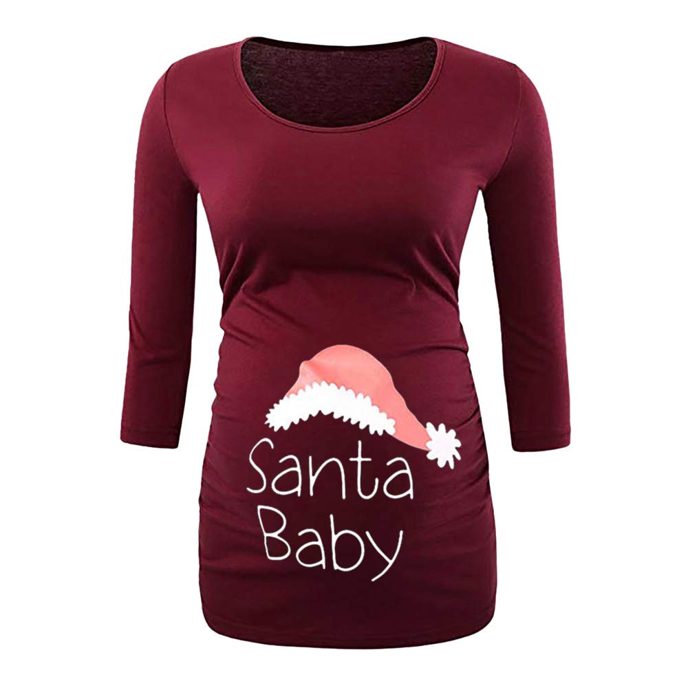 Cocila Damen Christmas Maternity Long Sleeve Schwanger Drucken Cartoon Printed T Shirt Tops Pregnancy Blouse Geraffte