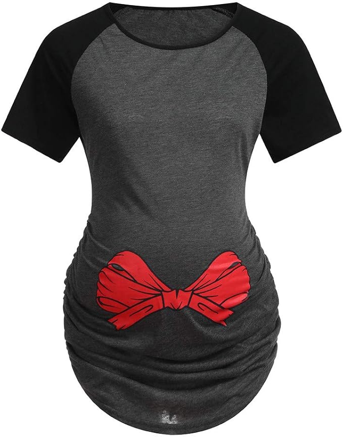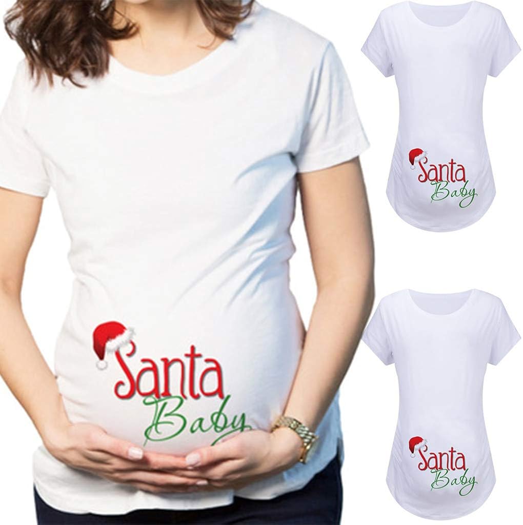 Allence Weihnachten Umstandsmode Frauen Mutterschaft Kurzarm Print Tops Schwangerschaft T Shirt Kleidung Rundhalsausschnitt Schwangeren Frau