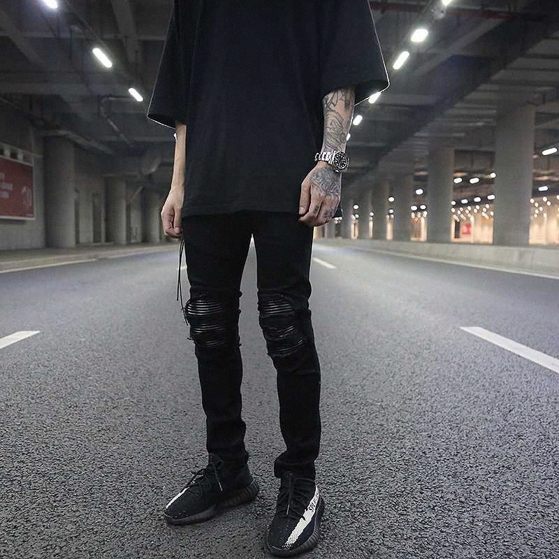 Grosshandel Manner Modedesigner Ripped Biker Jeans Distressed Moto Denim Joggers Zerstortes Knie Schwarz Leder Plissee Flecken Jeans Von Moonlight710 49 45 Auf De Dhgate Com Dhgate