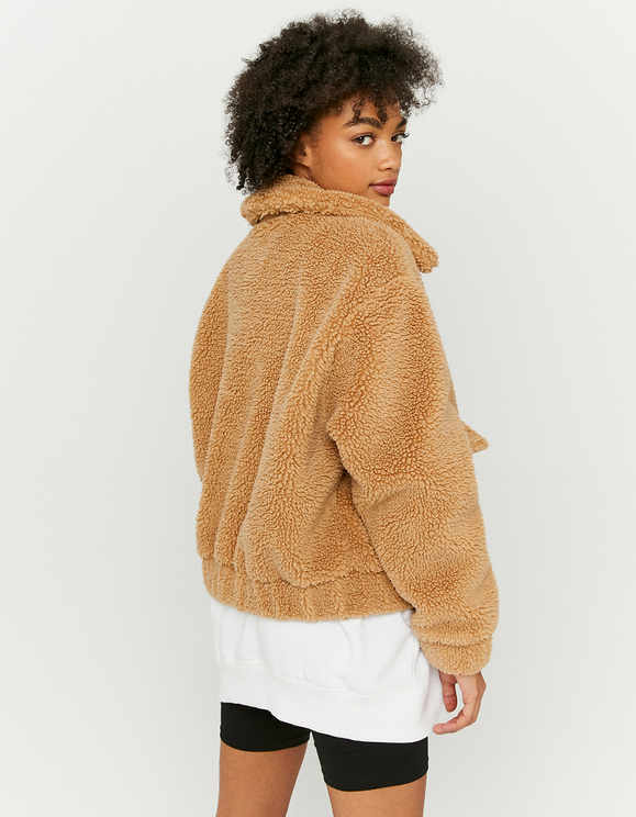 Kurze Teddy Jacke Mit Reissverschluss Eiskaffee
