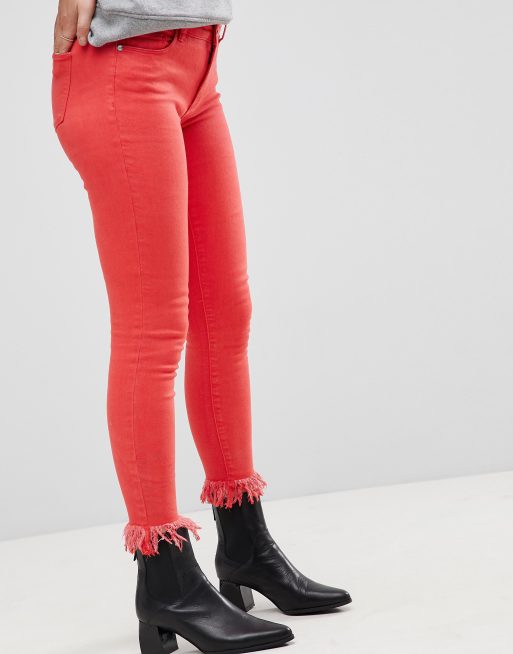 Only Farbige Skinny Jeans Mit Fransensaum Asos