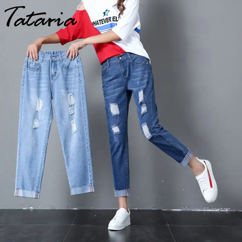 Tataria New Slim Pencil Pants Ripped Jeans Women High Waist Jeans Vintage Boyfriend Jeans For Women Denim Harem Pants Loose Jeans Aliexpress