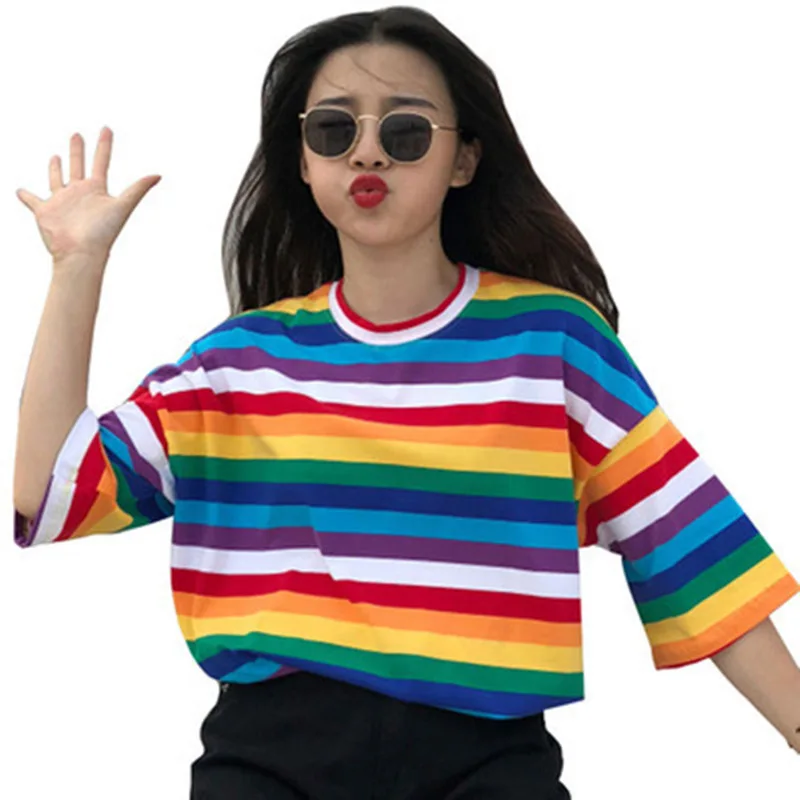 New T Shirt Damen Regenbogen Gestreiftes Hemd Harajuku T Shirt 18 Sommer Kurzarmeliges Koreanisches Punk T Shirt T Shirts Aliexpress