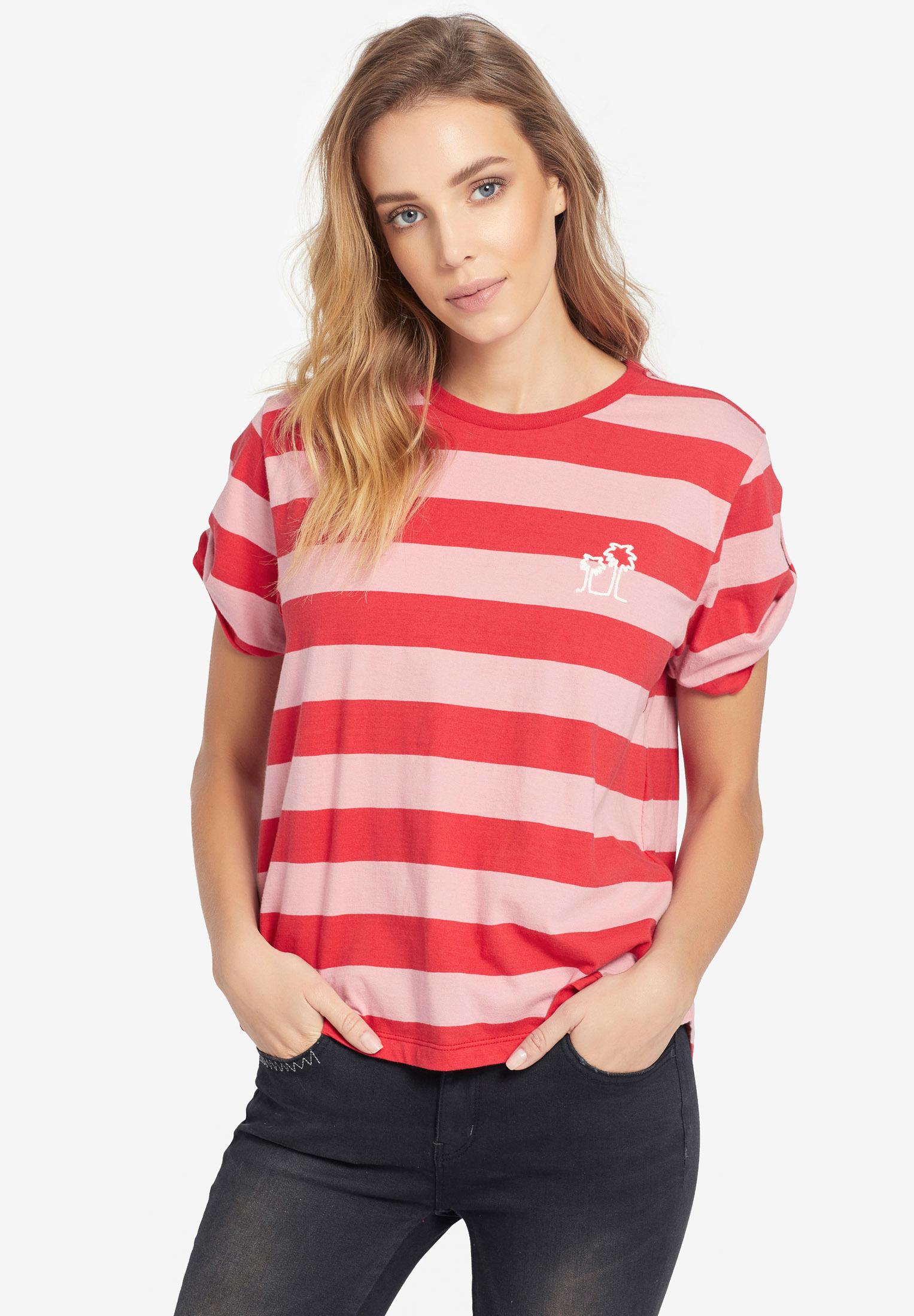 Khujo Lucida T Shirt Damen Rot Rosa Gestreift Im Online Shop Von Sportscheck Kaufen
