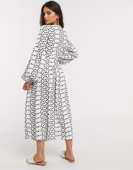 Lassiges Gesmoktes Kleid Mit Punkten In Schwarz Und Weiss Topshop