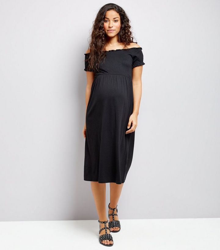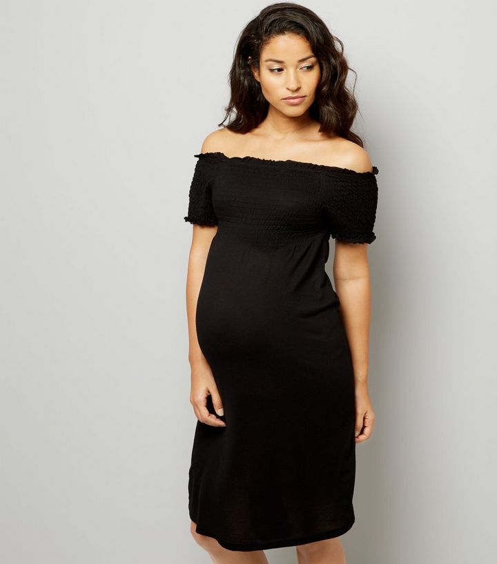 Umstandsmode Gesmoktes Kleid Mit Bardot Ausschnitt In Schwarz New Look