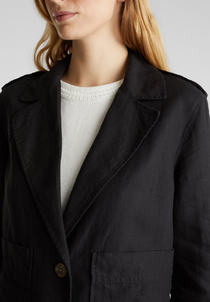Esprit Aus Leinen Kurz Blazer Mit Taschen Blazer Black Schwarz Zalando De
