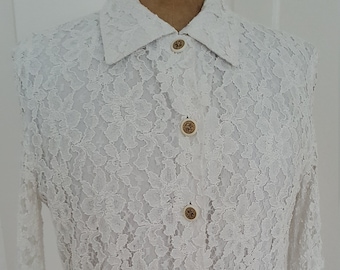 Vintage Spitzenbluse Weiss Blumenmuster Linsey Oma Klara