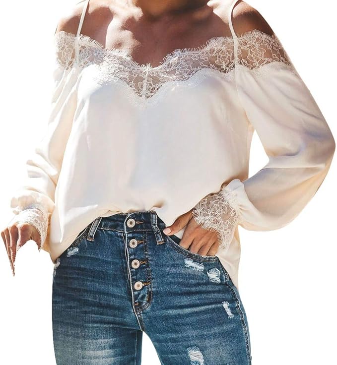 Filmyme Damenmode Weisse Spitzenbluse Damen Lange Armel Tops Casual V Ausschnitt T Shirt Amazon De Bekleidung